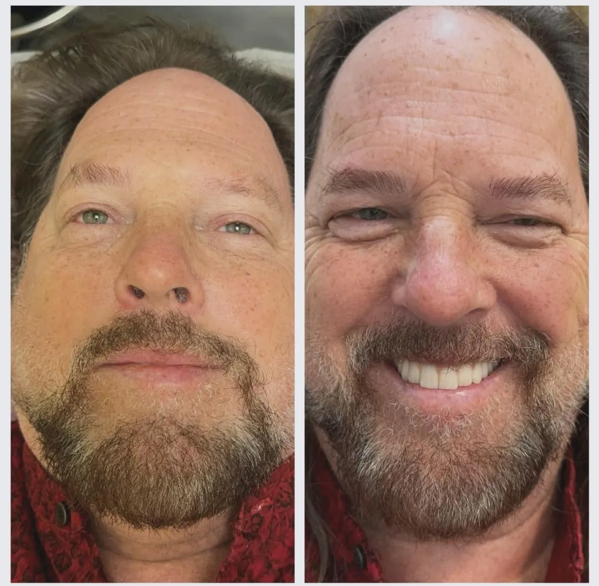 There’s minimal downtime. You may experience slight redness or flaking for a few days. Avoid sweating, swimming, and makeup on the area for about a week.